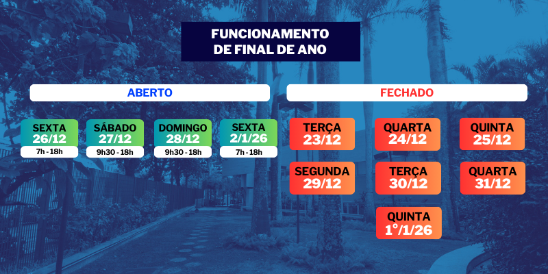 Se atente aos dias e horários de funcionamento da unidade nesse final de ano!