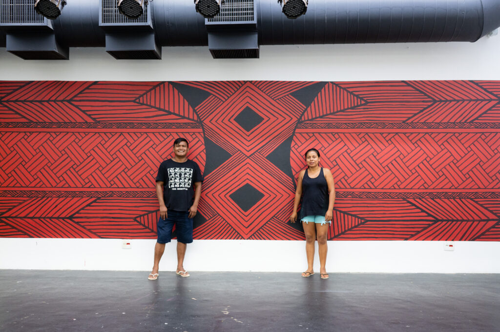 Em abril, o Espaço de Tecnologias e Artes do Sesc Campinas recebeu os artistas John Alexandre Dias Restrepo (John Abé) e Luzneri Aguiar Azevedo para a realização da pintura do mural de grafismos Tukano e Dessano.