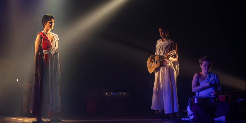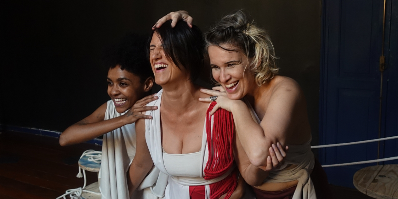 No palco, Moira divide a cena com Luize Mendes Dias, atriz e intérprete de Libras, e com a multi-instrumentista Isadora Medella. As três realizam audiodescrição e Libras em cena, de forma integrada às ações, aos gestos e à composição dramatúrgica. Essa abordagem amplia a noção tradicional de acessibilidade, transformando-a em linguagem artística e em uma experiência compartilhada entre públicos com e sem deficiência.