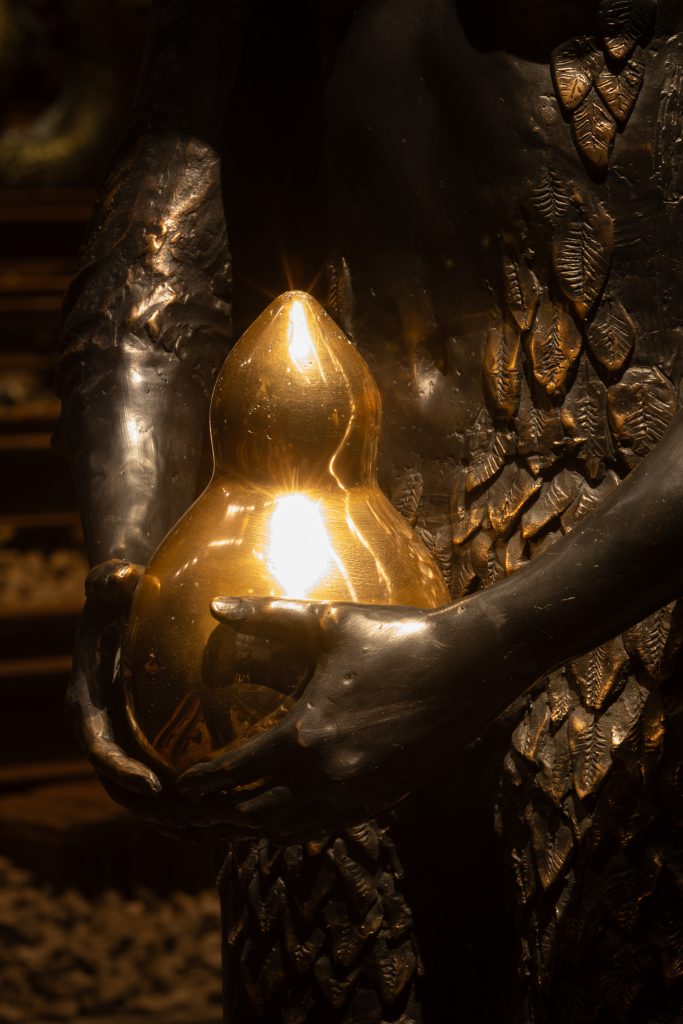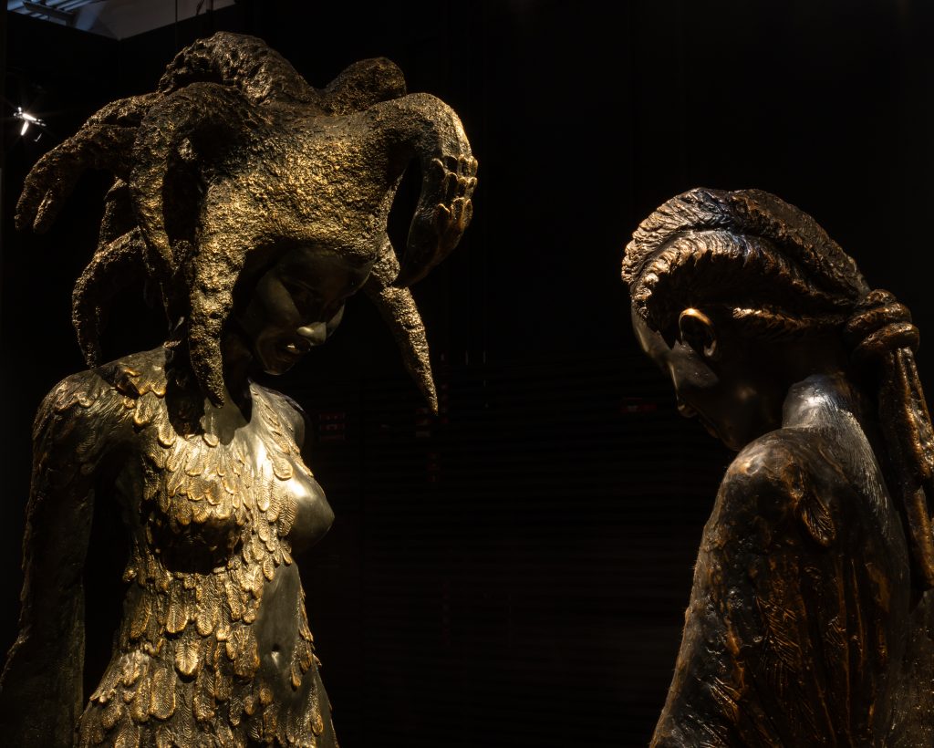 O diálogo entre as obras também se estabelece a partir da reverência ao feminino ancestral, recorrente nas pesquisas e nas produções de Taquary. Em Mulher Pássaro e Menina Pássaro, por exemplo, as peças destacam a importância do poder feminino como equilíbrio do mundo e apresentam as Ìyámis, mães ancestrais, associadas aos pássaros, guardiãs do poder de criação, da grande cabaça da existência. “São esculturas muito bem executadas, em que há beleza, mas aquilo atinge outros níveis de sensibilidade. As pessoas são tocadas de forma artística-espiritual”, descreve a curadora.