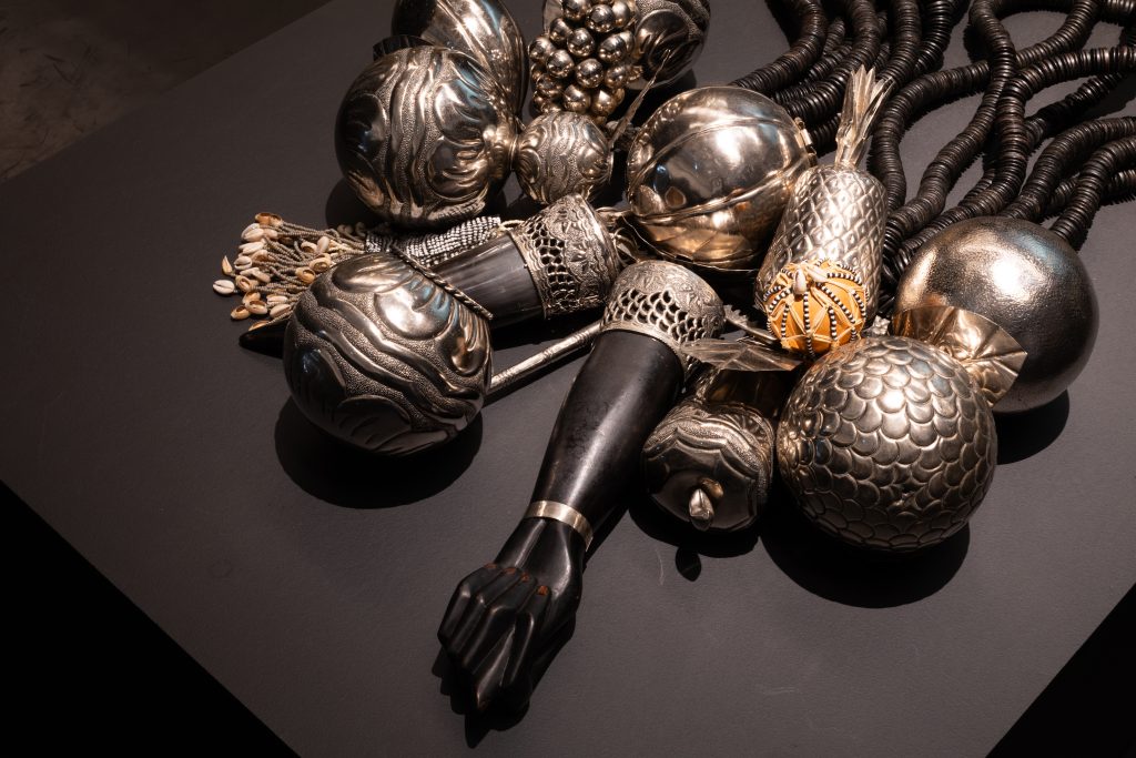 Em cartaz no Sesc Belenzinho, a exposição Onà Irin: caminho de ferro, de Nádia Taquary, homenageia mulheres negras que trilharam caminhos de liberdade e resistência. Na trajetória da artista baiana, que parte de investigações sobre a joalheria afro-brasileira e a arte tradicional africana, objetos que emanam beleza transcendem o caráter de adorno para afirmar identidades. É o caso da videoinstalação Abre caminhos, que traz uma grande penca de balangandãs, item utilizado como pecúlio (poupança), não à toa, no próprio corpo das “escravizadas de ganho” durante a luta, para a compra de suas alforrias.