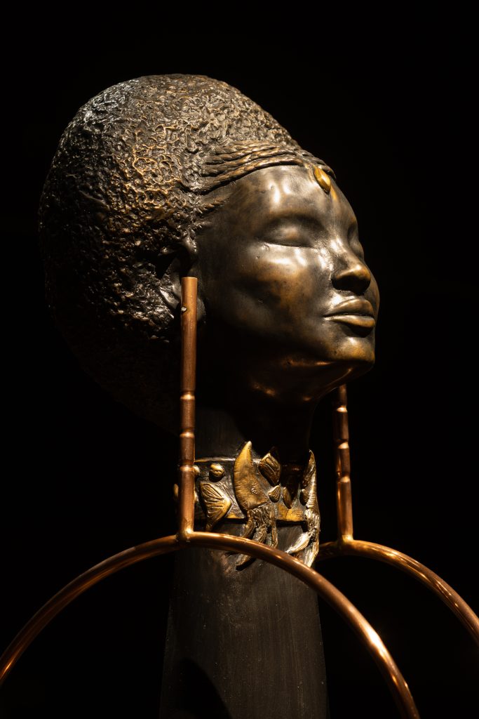 A série Oriki, é o que não se vê traz inspirações das máscaras Geledés (artefato cultural iorubá utilizado em rituais) e provoca o público a saudar legados. Na face espelhada de bronze de cabeças adornadas com búzios, miçangas, plumas e palhas, é possível reconhecer identidades. “Cada conta encaminha para um entendimento, uma compreensão do que a obra representa. A palha vai levar para Obaluaê, o lagdba para Omulu. Cada material é um elemento vivo desse sagrado, um signo africano. Eu não conseguiria, realmente, separar nada no meu trabalho dessa identidade, dessa presença negra”, conclui a artista.
