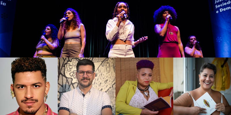 A Coletiva Slam das Minas SP, o apresentador Spartakus Santiago, o comunicador João Geraldo Netto e as escritoras Priscila Obaci e Marina Vergueiro participam das atividades nos dias 1 e 4/12.