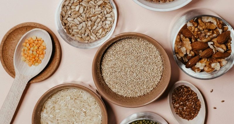 | Folhas, uva, erva-doce, nozes e linhaça. |