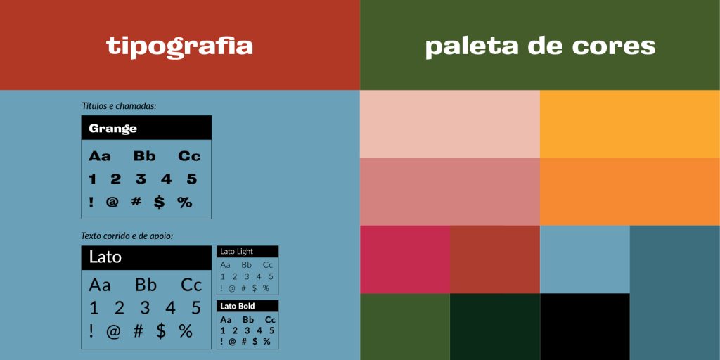 A tipografia escolhida também reforça a clareza e a consistência com a combinação das fontes Grange da Device Fonts, para títulos e chamadas, e Lato da Type Foundry, para textos corridos e de apoio.