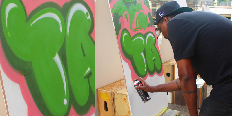 Nesta oficina de técnicas de Graffiti, professores paulistanos ONESTO e HOPE apresentaram ao público (a partir de seus 30 anos de experiência) diversos aspectos da utilização de tinta spray em pinturas murais e painéis, abordando não apenas aspectos técnicos, mas o racional por trás de cada criação como modo de transformar e de observar as grandes cidades a partir de intervenções pontuais.