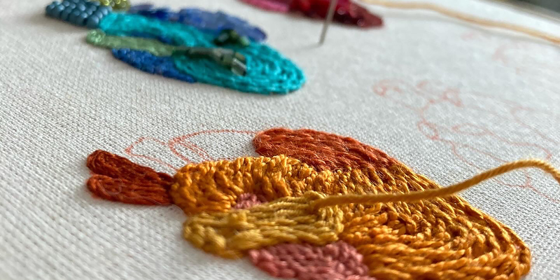 Introdução prática ao bordado livre contemporâneo, com a apresentação dos materiais, ferramentas e possibilidades. O participante aprendeu os pontos básicos tradicionais, pilares para técnica, que resultou em um bordado de parede ao final do encontro.