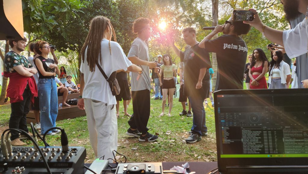 O destaque dessa edição do LabMais no Sesc Registro foi a criação do mini documentário “A Batalha Antes da Rima”, uma produção coletiva que retrata um dos projetos mais dinâmicos do Sesc Registro – a Batalha do K3 – além registrar uma parte da cena do rap e hip hop na região. No documentário, os MC’s participantes apresentam rimas improvisadas a partir de temas sugeridos pelo público, abordando temas como educação, política, cultura e questões sociais. A produção vai além do simples desafio de rimar, evidenciando o raciocínio crítico dos jovens ao refletirem sobre questões contemporâneas por meio da cultura hip hop. O filme revela como a Batalha do K3 se transforma em um espaço de aprendizado e conscientização, dando voz a quem muitas vezes não tem um lugar de fala nos grandes debates sociais.