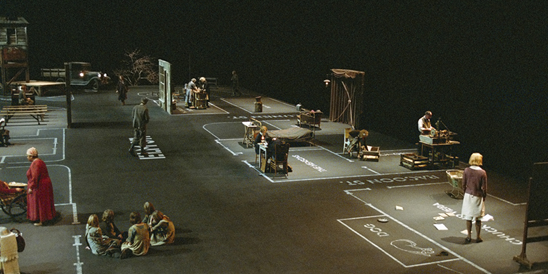 A espinha dorsal que sustenta o choque estético de Lars von Trier é, fundamentalmente, a incorporação do conceito de teatro épico forjado pelo dramaturgo alemão Bertolt Brecht. Ao invés da reprodução do drama burguês – que prega a imersão, o ilusionismo e a catarse emocional complacente –, o cineasta faz uso deliberado do efeito de distanciamento (Verfremdungseffekt). Isso se materializa na divisão rigorosa dos filmes em capítulos e prólogos, no olhar súbito de personagens diretamente para a lente e na própria não nomeação de alguns de seus personagens (o que afasta a simples individualização psicológica, fazendo com que assumam a posição de funções sociais), entre outras técnicas.
