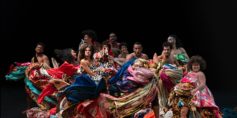 Partindo de cosmogonias indígenas e africanas, a diretora Lia Rodrigues orquestra em cena corpos que se acoplam em arranjos variados na busca pelo coletivo. Embolando-se entre si e em cobertores, vestes e tecidos estampados, os intérpretes-criadores vasculham possibilidades de encantar o que os cerca – imagens, danças e paisagens – e transformá-lo em seus corpos e ideias, refletindo formas de ir ao encontro dos seres viventes em toda a sua diversidade.