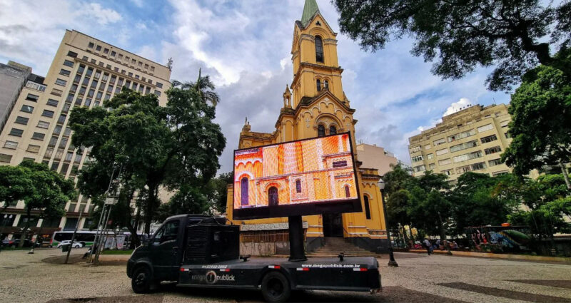 Durante quatro dias, um ledtruck – veículo equipado com uma estrutura de painéis de led – percorre diferentes regiões da cidade exibindo imagens, textos e animações, compartilhando reflexões com o público diretamente nos locais de referências históricas.