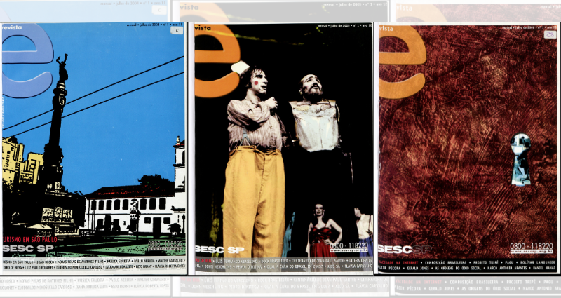 As edições de 2004, 2005 e 2006 trouxeram nas capas: a comemoração de aniversário de 450 anos de São Paulo e os desafios do turismo na cidade; o teatro de rua e os limites entre público e privado com o aumento da presença de tecnologia no cotidiano. (reprodução/acervo Sesc Memórias)