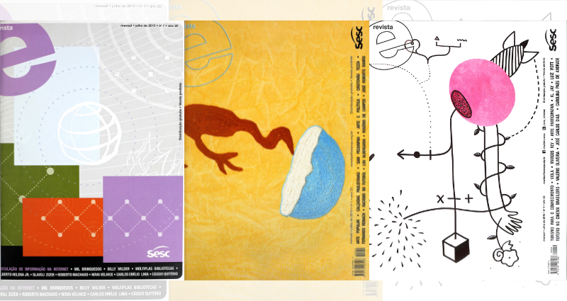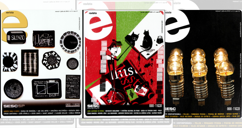 A capa de 2010 apresentava portas de entrada para novos artistas, que tinham em São Paulo uma variada gama de oportunidades de encontrar o público. Em 2011, a capa destacava a ilustração de livros no Brasil como conteúdo autoral. Em 2012, a arte contemporânea foi a pauta principal. (reprodução/acervo Sesc Memórias)