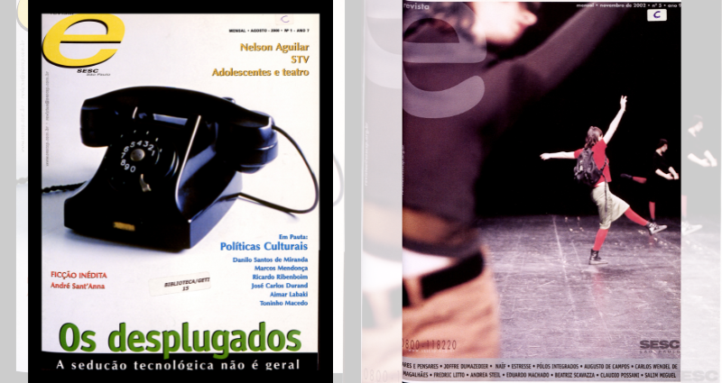 Em agosto de 2000, ocorre uma grande alteração, com a letra “e” passando a ser grafada em minúscula, o que se mantém até hoje. O logo da capa à esquerda foi aplicado até outubro de 2002 e o da direita circulou de novembro de 2002 a junho de 2011 (reprodução/acervo Sesc Memórias)