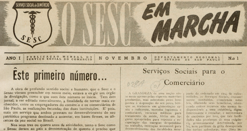 O jornal impresso mensal O Sesc em Marcha foi a primeira incursão editorial, contando com 19 edições publicadas entre novembro de 1949 e dezembro de 1951.