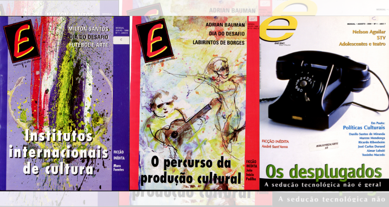 Edições de 1998, 1999 e 2000 traziam como tema de capa: os institutos internacionais de cultura; os bastidores da produção cultural; e uma discussão sobre indivíduos desconectados da revolução tecnológica, pauta de extrema relevância na virada do milênio. (reprodução/acervo Sesc Memórias)