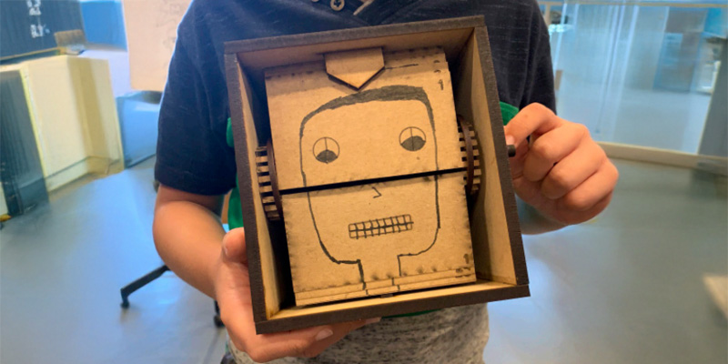 Com peças cortadas a laser, os participantes montam seu próprio mutoscópio, um dispositivo de visualização de animação, e criam sua própria animação em 24 quadros, desenhando nos cartões previamente cortados e gravados a laser, utilizando canetinhas ou lápis.