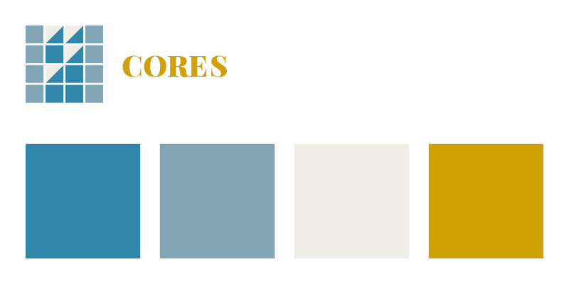 O piso, que utiliza elementos geométricos, também inspirou parte dos grafismos utilizados na identidade, assim como outras partes do edifício, como a claraboia, as janelas, a fachada e as colunas do térreo. Os designers sintetizaram esses elementos em formas geométricas.