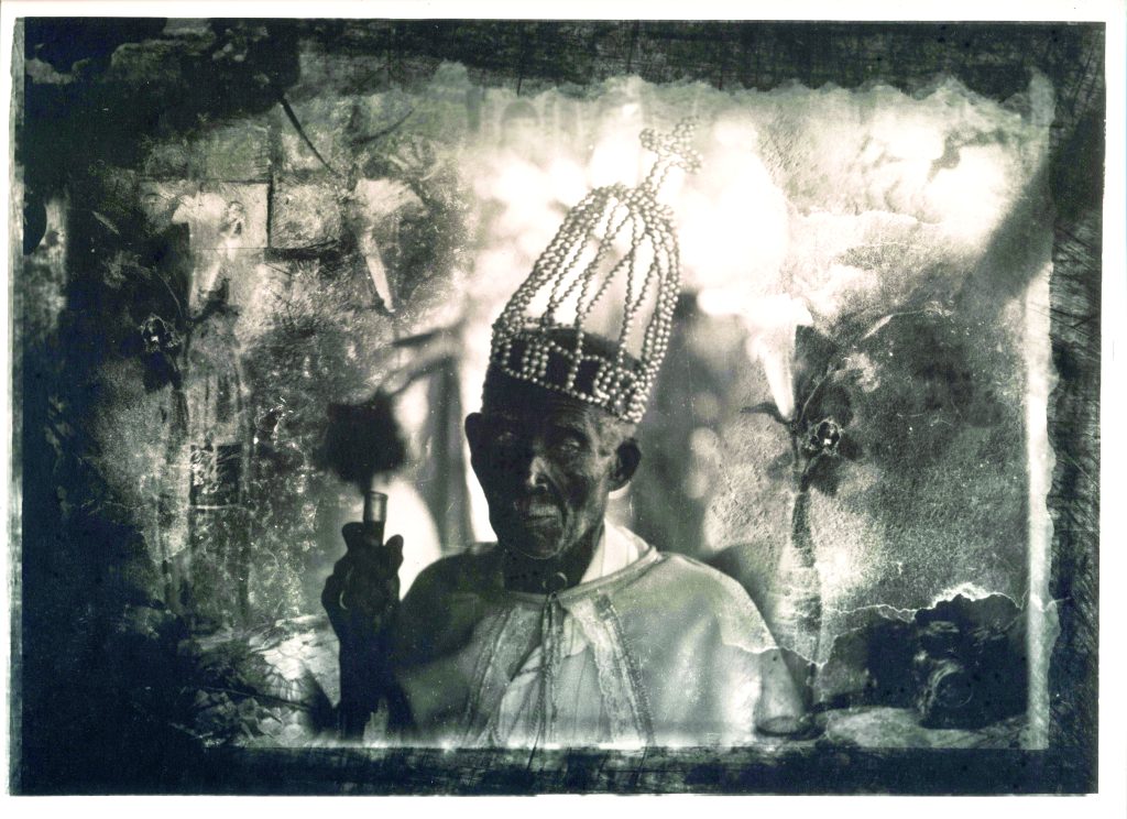 Nascido em Juatuba (MG) em 1955, descendente de escravizados, Eustáquio Neves construiu uma trajetória singular na fotografia brasileira contemporânea. Químico industrial de formação, encontrou nos laboratórios fotográficos seu espaço de experimentação radical. Desde o início da década de 1990, desenvolve uma linguagem que amalgama fotografia, pintura, colagem e intervenções químicas para criar narrativas visuais potentes sobre a diáspora africana, o racismo estrutural e a ancestralidade afro-brasileira.