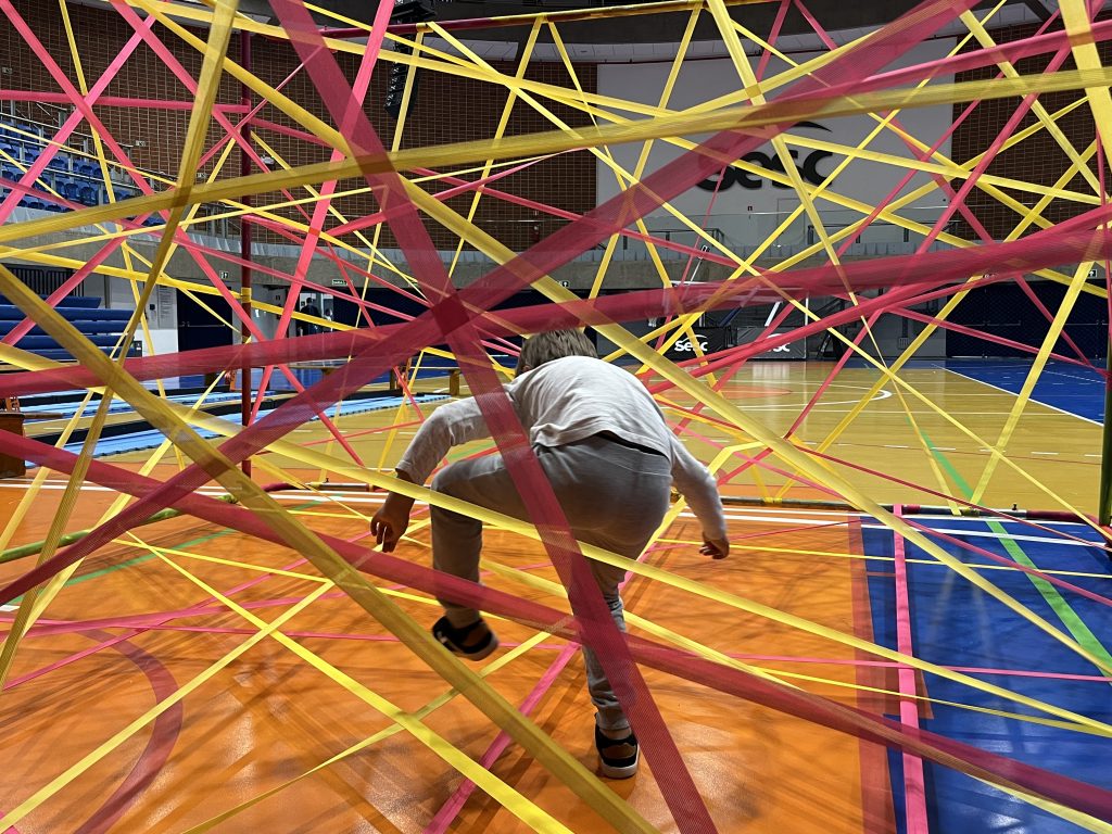 A cama de gato é uma estrutura formada por cordas ou elásticos entrelaçados, criando um percurso que desafia as crianças a atravessarem sem encostar nos fios. O objetivo é explorar diferentes formas de se movimentar, passando por dentro, por cima ou por baixo dos vãos, com criatividade e atenção. Uma atividade lúdica e desafiadora que promove o brincar ativo, o trabalho em equipe e o respeito ao corpo e ao espaço do outro.