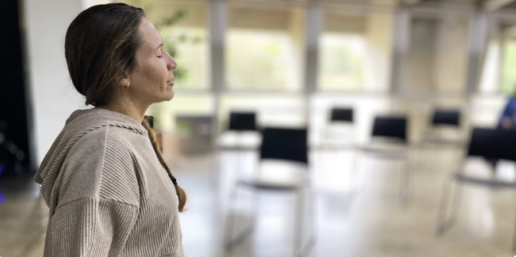 Vivência breve de pausa consciente, com alongamentos e movimentos suaves, voltada ao alívio de tensões, ao aumento da presença e à reconexão entre corpo e mente.