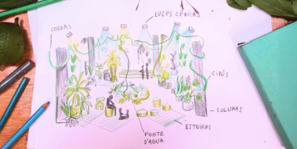Instalação artística e sensorial que convida à pausa, ao cuidado e à reflexão, integrando natureza, memória ancestral e saberes populares, estimulando o cultivo do equilíbrio interior.
