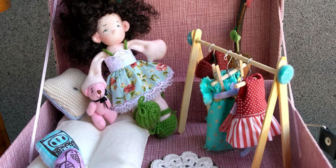 Nesta oficina com Andreia Kusaba, artesã e especialista em história da arte, as crianças podem adereçar brinquedos como bonecas, asas de borboleta e cavalinhos de pau. Além disso, recebem as peças internas da maleta (colchão, travesseiro, cabide e varal para pendurar roupinhas) e, além disso, plantam flores em um vasinho.