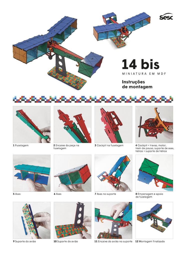 Para celebrar a chegada do Sesc 14 Bis no Bairro Bela Vista, em São Paulo, a Loja Sesc lança a miniatura do famoso avião. Em 1906, Santos Dumont realizou o primeiro voo a bordo da aeronave que batiza a Praça vizinha à nova Unidade. A miniatura é formada por várias peças, feitas em folha de MDF, que se encaixam formando o famoso avião.