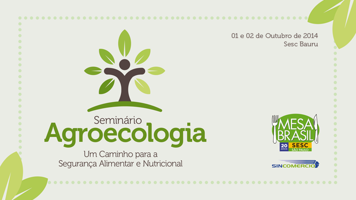 Em consonância com o compromisso educativo e propositivo do programa Mesa Brasil, e em comemoração aos 20 anos do Programa Mesa Brasil São Paulo, o Sesc Bauru realiza o Seminário sobre Agroecologia: um caminho para a Segurança Alimentar e Nutricional. A iniciativa tem a proposta de possibilitar o encontro de saberes, a difusão de modos de produção sustentáveis na promoção da segurança alimentar e nutricional e despertar a consciência para uma sociedade mais igualitária, uma alimentação saudável, ética e digna.