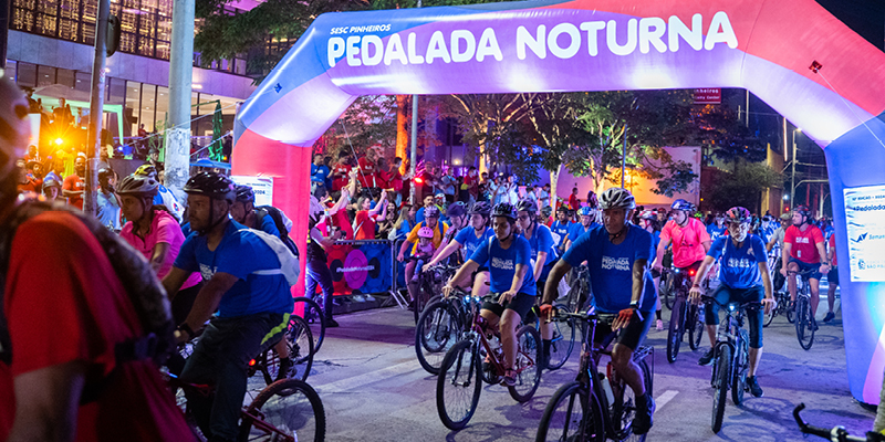 No dia 14 de setembro, o Sesc Pinheiros promoveu a décima edição da Pedalada Noturna, evento que visa incentivar o uso da bicicleta como meio de transporte sustentável e promover a ocupação da cidade pelos ciclistas. Com um percurso de aproximadamente 20 km, o circuito passou por algumas das principais vias e pontos turísticos de São Paulo, como a Av. Dr. Arnaldo, a Rua da Consolação, o Teatro Municipal, a Catedral da Sé, a Av. Liberdade, a Av. Paulista, e a Rua Cardeal Arcoverde, com largada e chegada no Sesc Pinheiros.