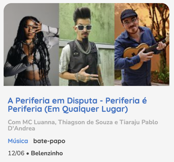 Em junho, o Sesc Belenzinho lança a primeira edição do Periferia é Periferia (Em Qualquer Lugar), um projeto que chega com tudo trazendo shows, oficinas, bate-papos e sessões de cinema — tudo pensado pra valorizar a arte e a cultura que nascem nas periferias.