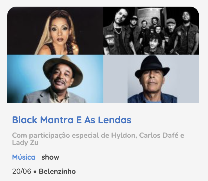 A abertura rola no dia 12 de junho, na área de convivência do Sesc, com um bate-papo entre MC Luanna, Thiagson de Souza e Tiaraju Pablo D’Andrea. Já no dia 20/6, tem show inédito do Black Mantra e As Lendas, com participações especiais de Hyldon, Carlos Dafé e Lady Zu, em uma homenagem poderosa a Cassiano e Tim Maia.