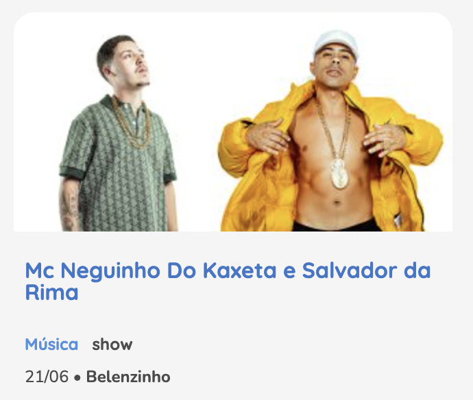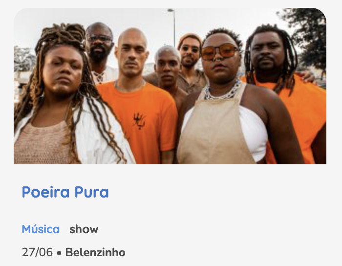 No dia seguinte, 21/6, o palco é do funk consciente e das batalhas de rima, com MC Neguinho da Kaxeta e Salvador da Rima, direto da zona leste. E no dia 27/6, quem comanda é o grupo Poeira Pura, trazendo um show inédito que mistura composições próprias e sambas clássicos.