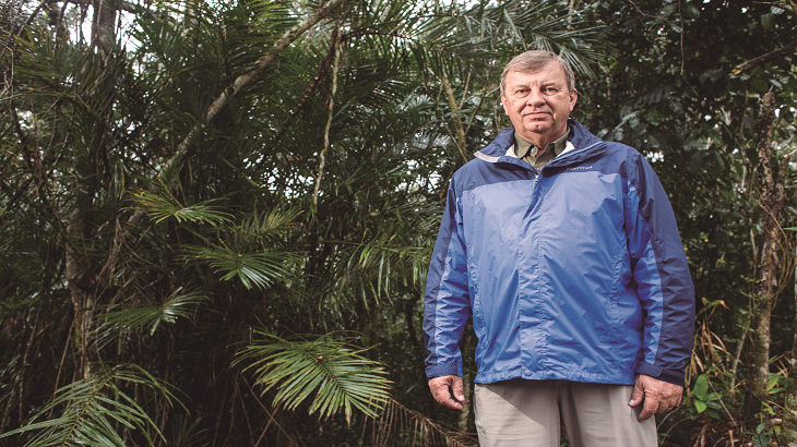 Filho de um aficionado por pesca, o norte-americano Jim Barborak estreitou contato com a natureza desde muito jovem. Dessas aproximações, que ele chama de “afetivas”, desdobrou-se uma respeitada trajetória profissional. Barborak é codiretor do centro de manejo de áreas protegidas na Universidade Estadual do Colorado (Estados Unidos). Ele esteve na Reserva Natural Sesc em Bertioga, em agosto, para compartilhar experiências com os guarda-parques, educadores e demais profissionais que atuam no local. Um dos diferenciais da reserva que mais o impressionaram foi o projeto de acessibilidade e de trilha com desenho universal, em fase de desenvolvimento.