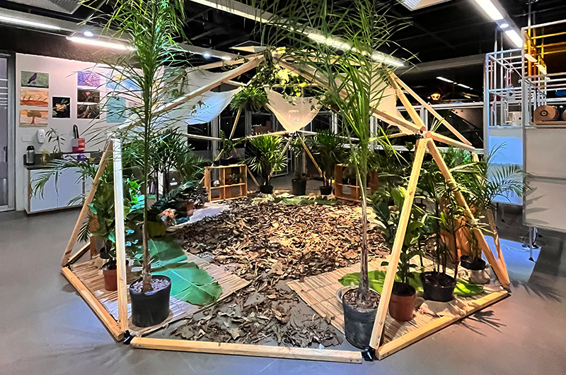 Em Guarulhos, uma redoma climática construída em bambu convida à imersão em uma minifloresta, enquanto a vivência Que clima é esse? propõe observar insetos e aves para entender as transformações ambientais.