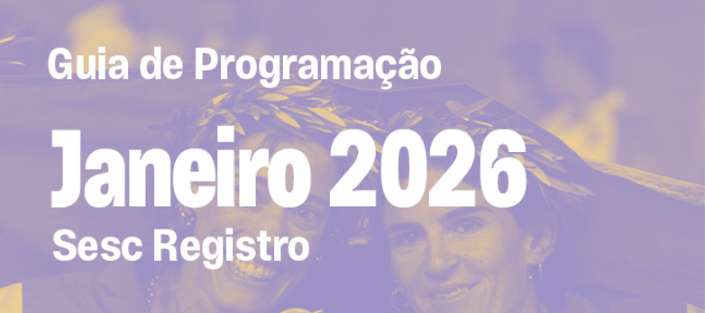 Todo mês, o guia de programação mensal do Sesc Registro será impresso e distribuído gratuitamente nas unidades. Traz todas as informações das atividades, além dos destaques da programação do mês.