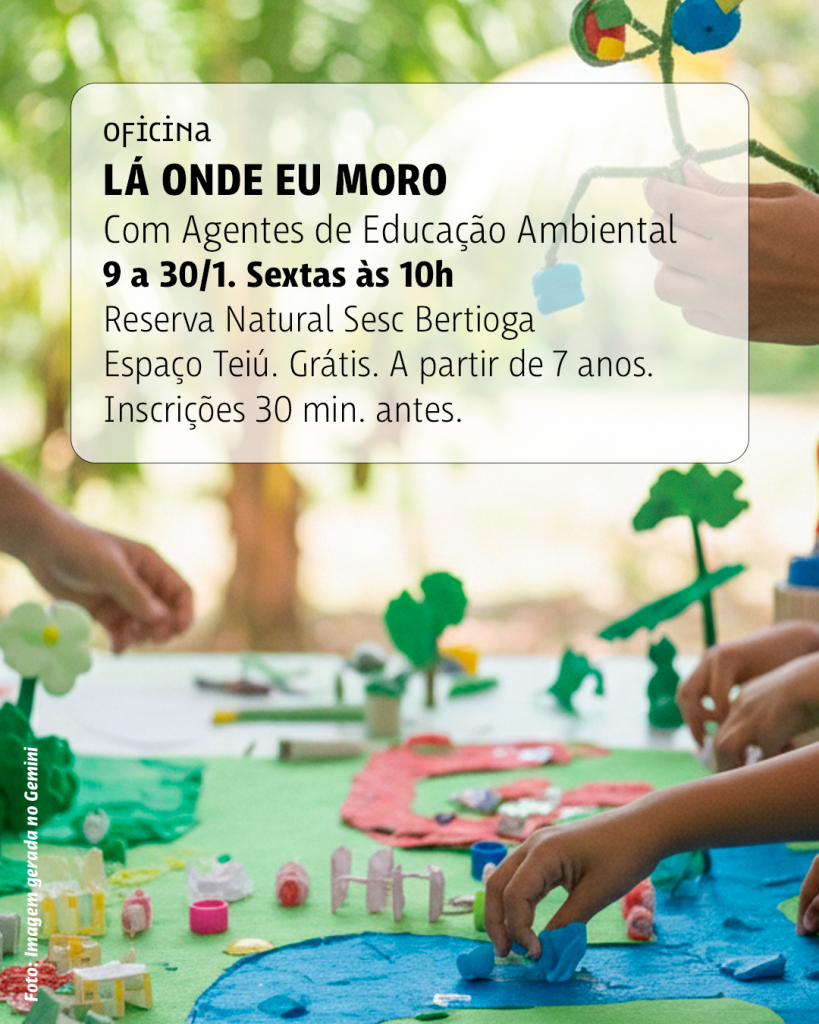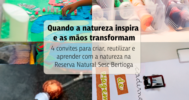 Criar também é cuidar. Quando o tempo desacelera e o olhar se afina, materiais ganham novos sentidos, histórias se entrelaçam e a natureza passa a ser não só cenário, mas matéria, guia e inspiração. Na Reserva Natural Sesc Bertioga, arte e educação ambiental se encontram em quatro experiências que valorizam o reaproveitamento consciente, o uso de materiais naturais e a imaginação como força de transformação. Oficinas e ateliês que convidam ao fazer manual, ao pensamento coletivo e à construção de futuros mais atentos e regenerativos.