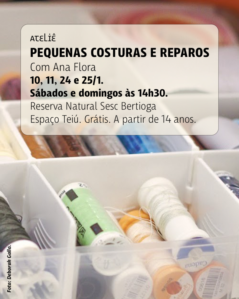 O Ateliê Livre de Apoio a Pequenas Costuras e Reparos tem como objetivo oferecer um espaço coletivo onde roupas ganham uma nova vida e as pessoas redescobrem o valor do fazer manual. A proposta é simples: costurar, reparar e prolongar a vida útil de peças de vestuário, seja por apego emocional, por estarem ainda em ótimo estado de conservação ou pela consciência de que não podemos mais simplesmente descartar e substituir. Cada participante traz suas próprias roupas para reparar, com acompanhamento e orientação de forma colaborativa, incentivando a troca entre participantes com diferentes níveis de experiência.