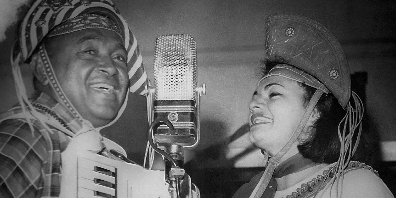 Aos 14 anos, a garota Inês se inscreveu em outro concurso de calouros, mas resolveu trocar seu nome para Maria Inês (que o locutor da Rádio Borborema pronunciou Marinês – e assim ficou). A mudança se deu porque seu pai, o torneiro mecânico Manoel Caetano de Oliveira, que ganhava a vida fabricando armas e munições, ouvia muito o rádio e não aceitaria a filha nesse meio, por preconceito. O irmão mais velho, Ademar, disse ao patriarca, então, que levaria a irmã ao cinema, e os dois seguiram para a competição. Marinês cantou “Dez anos”, música composta por Lourival Faissal, e empatou em primeiro lugar com Genival Lacerda (1931-2021). Ambos dividiram o prêmio de 100 mil réis, e Marinês ainda virou cantora oficial da emissora. “Era uma moça pequena, magrela e com um vozeirão, afinadíssima. Quando o diretor da rádio levou todo aquele dinheiro para o meu avô, ele viu que havia sido ganho honestamente, e liberou a filha para trabalhar. Naquela época, ela cantava mais músicas românticas”, revela Marcos Farias.
