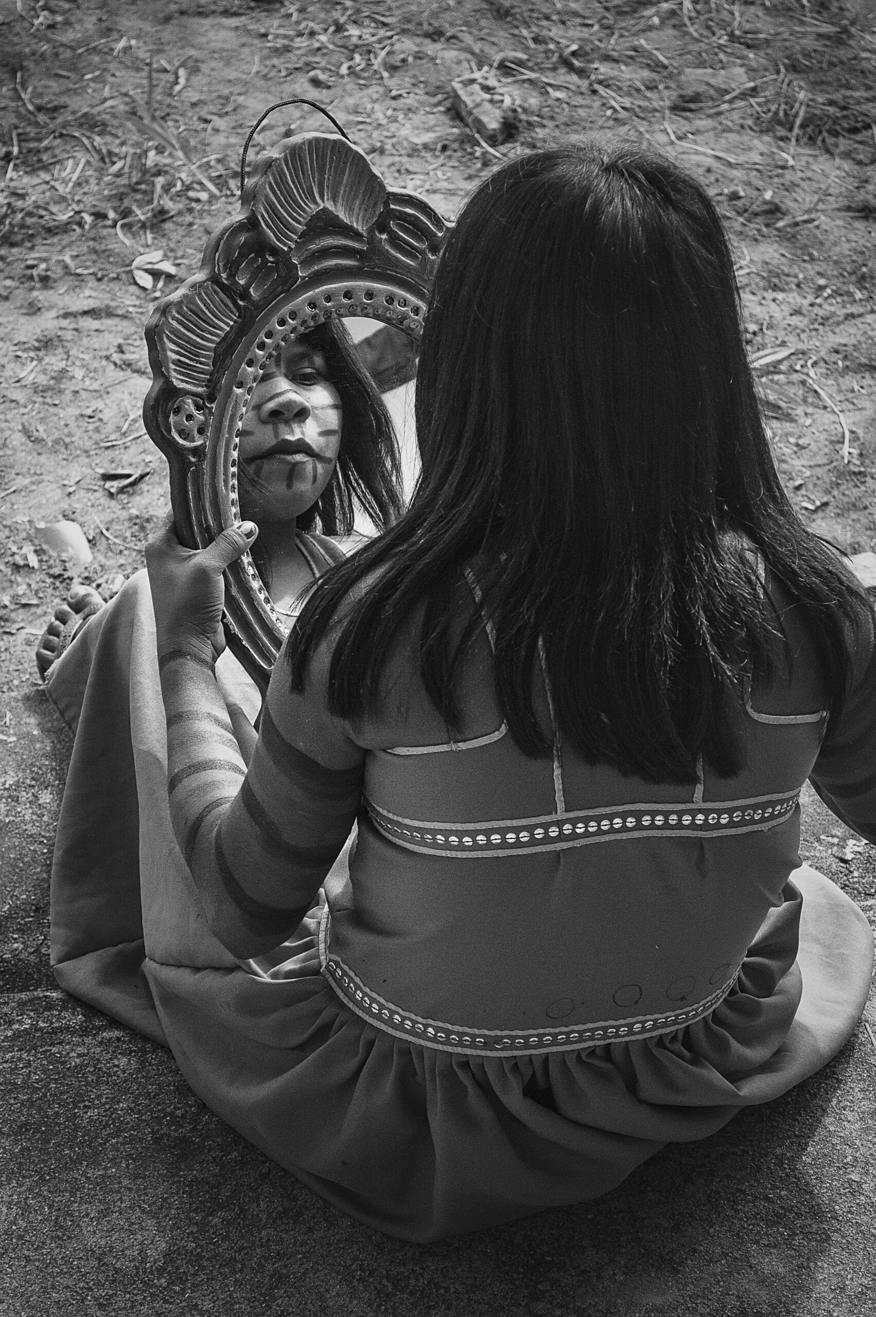 A designer Benilda Vergilio, que assina como Benilda Kadiwéu (nome de sua etnia), é uma das novas representantes da arte indígena brasileira, presente na exposição com uma fotografia de pintura facial feita por mulheres da aldeia Alves de Barros, em Porto Murtinho (MS). “Mostro, no meu rosto e corpo, as pinturas e os grafismos do povo Kadiwéu, buscando dar visibilidade e fortalecer a nossa cultura, para que a arte indígena no país tenha um alcance cada vez maior e seja mais valorizada. Há muitos(as) indígenas(as) talentosos(as) pelo Brasil, e o que esses parentes precisam é apenas de uma oportunidade, pois a arte já existe em nós desde a infância”, aponta. Para Benilda, é fundamental reforçar a representatividade das mulheres indígenas na arte, porque muitas são linha de frente em suas comunidades ou nos centros urbanos onde moram. “Nós, artistas indígenas, existimos e somos capazes de criar conexões, impactar o público e influenciar todo o mercado de artes”, conclui ela, que desenvolve um trabalho educativo com crianças para divulgar sua cultura e diminuir o preconceito.