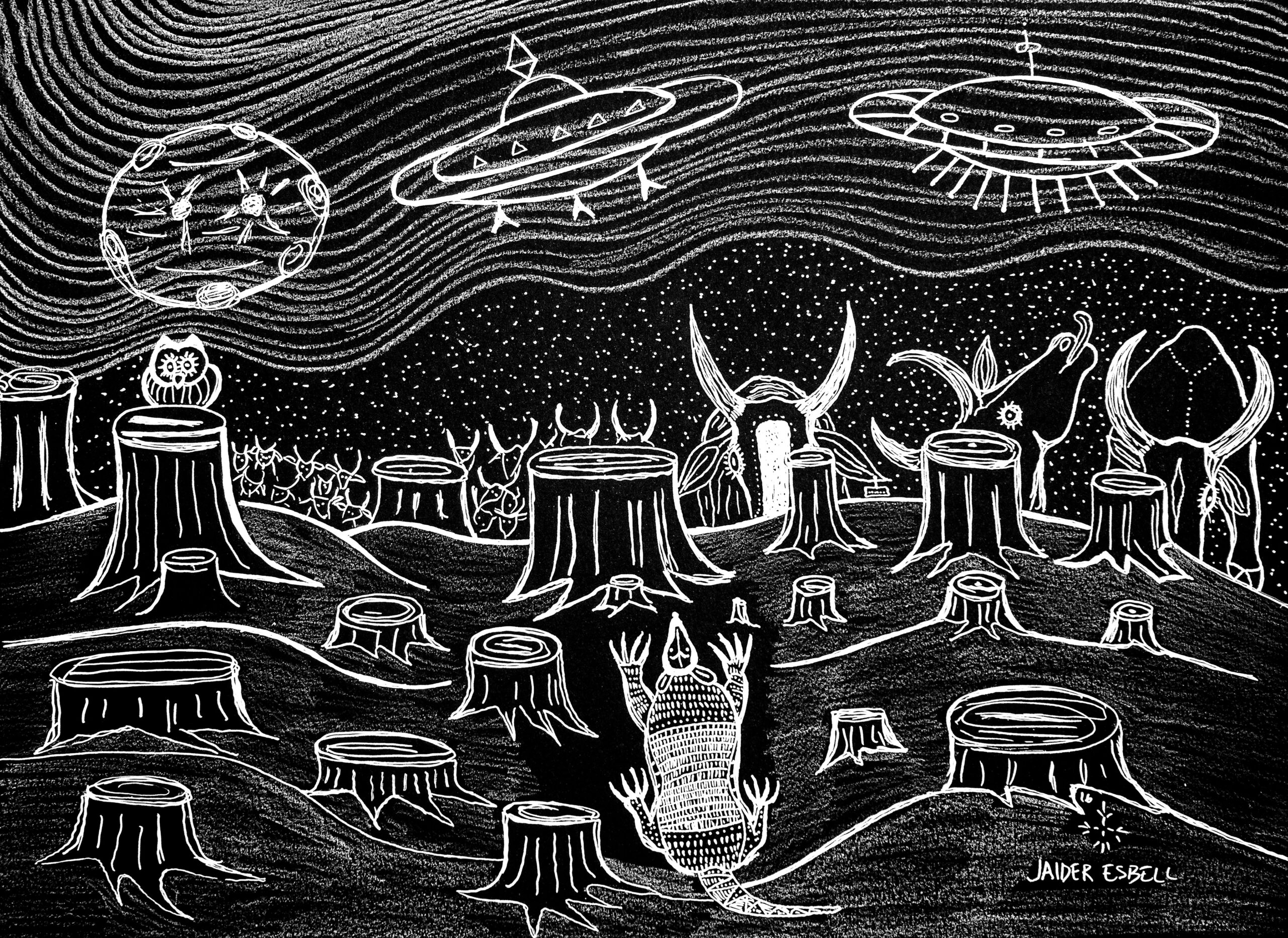Coração na aldeia, pés no mundo (Uk’a Editorial, 2018) é, originalmente, o título de um livro publicado pela cordelista e poeta indígena contemporânea Auritha Tabajara, nascida em Ipueiras (CE). “A literatura é uma ferramenta muito forte de resistência. Na minha escola, não havia livros de autoria de mulheres indígenas, então eu sempre falava que seria uma escritora para que outras com o mesmo sonho tivessem a coragem de concretizá-lo”, lembra. Para ela, que desde criança se interessava pelos cantos, rezas e ervas medicinais da avó, ter os pés no mundo e, ao mesmo tempo, manter o coração na aldeia é conectar o mundo ancestral com as novas tecnologias. “Espero que obras feitas por mulheres ganhem cada vez mais espaço, sejam vistas, lidas, mostradas, interpretadas. É importante que nos escutem, respeitem as nossas vozes, os nossos corpos, valorizem os nossos trabalhos e nos deixem viver”, ressalta.