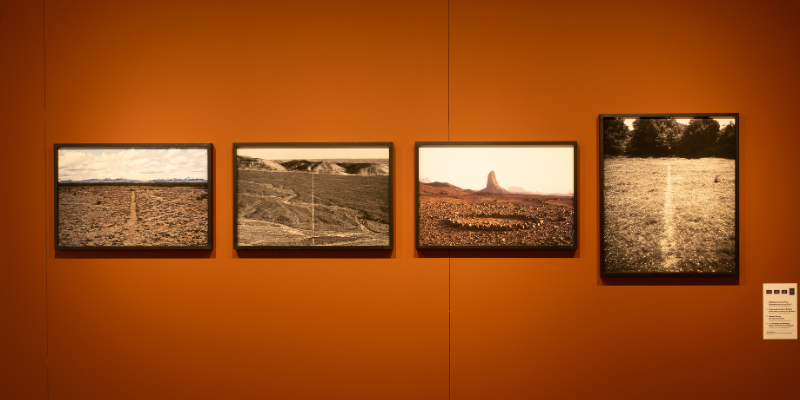 Detalhe das obras “Walking a Line in Peru”, “A line and tracks in Bolivia“, “Sahara Circle” e “A Line Made by Walking“, décadas de 60, 70 e 80
