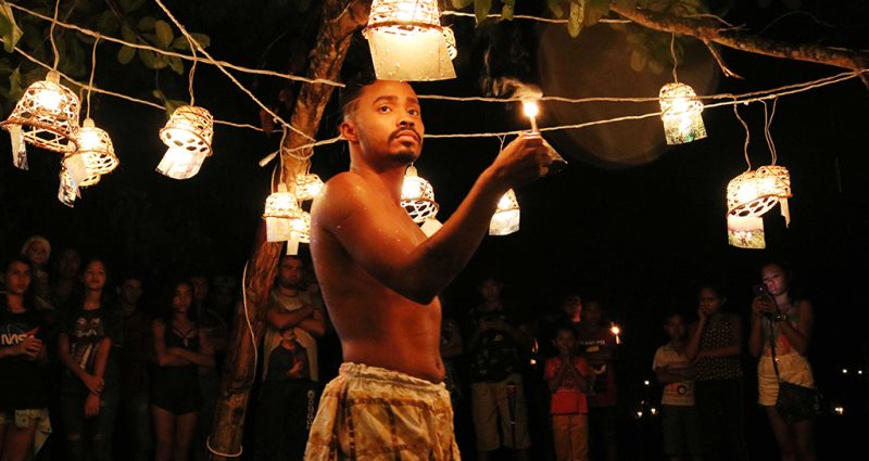 Existe um convite coletivo: não se esquecer de si. Todos nós percorremos uma jornada neste mundo. Acredito que a família, a casa, o berço, o lugar onde nosso umbigo está enterrado são pontos de partida e, ao mesmo tempo, bússolas possíveis para nossas jornadas. Assim, o íntimo se relaciona com o coletivo no desejo e na partilha daquilo que nos é familiar: todos estamos em uma jornada e precisamos de um rito de cura para continuá-la. Quando convido o público a experienciar essa relação, também o convido a mover forças que espiralam a vida: convocando o passado a abraçar o aqui e agora, integrando-se a isso e recriando a realidade em fluxos de desejos pelo que está por vir. Como um rito de esperançar coletivo. Gestos como cortar maniva, colher e descascar mandioca, torrar e peneirar farinha, tomar banho de igarapé, assobiar para chamar o vento, acender lamparinas e comer farinha com a mão – que compõem o trabalho coreográfico – estão impregnados de sentidos e memórias. Não apenas para mim, mas para quem vem dos interiores da Amazônia. Quando esses gestos são convocados no rito artístico, criam-se portais relacionais de memórias pessoais e coletivas.