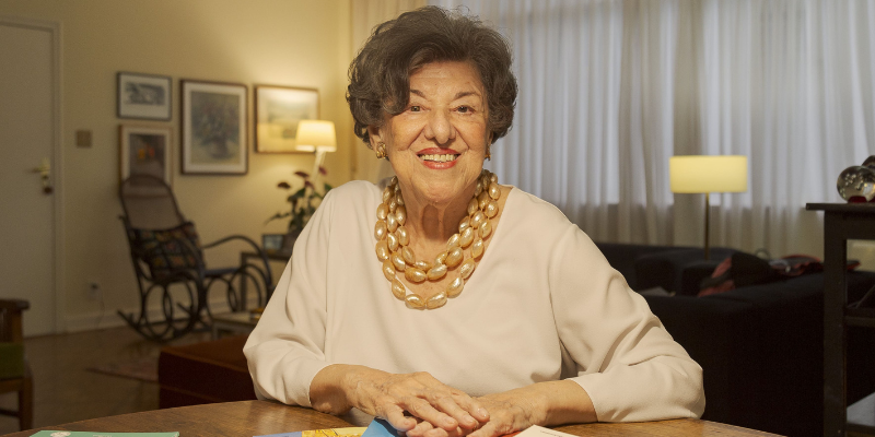 Com tanto gosto pela literatura, pela leitura, pelos livros, quem vê de fora pensaria: por que não fazer uma faculdade de letras? No entanto, sua escolha foi graduar-se em ciências sociais e políticas. Por quê? Por que que a gente faz as coisas, né? Eu não sei por que é que eu fiz. Comecei um cursinho para letras, mas briguei com o professor de latim que não gostava de mim. Minha irmã o adorava, tanto que ela entrou em segundo lugar na faculdade de letras da USP. E eu acabei desistindo e fui fazer sociologia. Achei bonito. Sei lá… pior que a sociologia não é a minha. Mas, eu ainda sou muito influenciada pela faculdade, porque, claro, fui aluna de Sérgio Buarque de Holanda (1902-1982), fui aluna do Alexandre Kafka (1917-2007), que foi diretor do Banco Mundial, fui aluna de Virgínia Bicudo (1910-2003), que era uma psicanalista muito famosa. Ou seja, fui aluna de gente muito boa. Fiz um curso que me marcou como pessoa que não tem preconceitos. Na minha família não tinha preconceito.