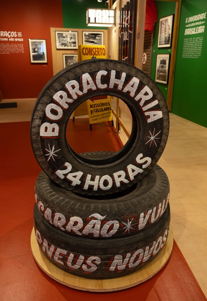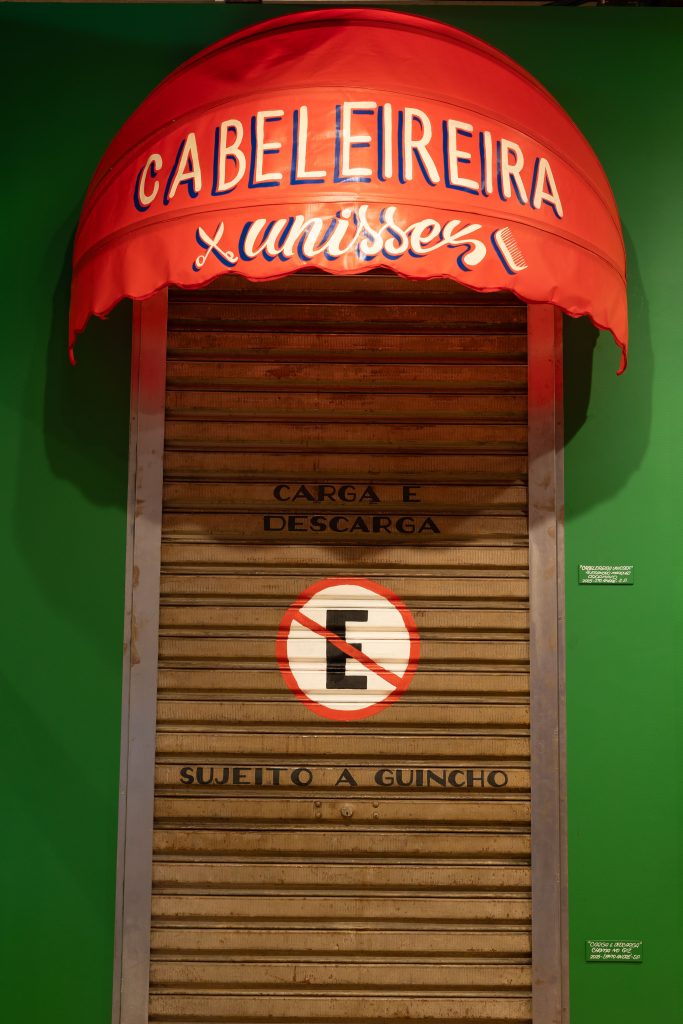 de cartazistas, abridores de letras, letristas profissionais e mestres filetadores. Ao todo, 66 artistas estão presentes nessa mostra que reúne uma diversidade de sotaques e formas. “A gente tentou fazer uma curadoria a partir de estilos e suportes. Tem quem pinta na madeira, na telha, num plástico, no metal, no cavalete, no toldo, na porta de metal e até no carrinho de pipoca. Isso tudo a gente quis mostrar, porque faz parte do trabalho do letrista”, conta Filipe Grimaldi. Vale destacar que toda a comunicação visual da exposição – das placas de identificação das obras, aos textos curatoriais nas paredes – foi inteiramente pintada à mão.