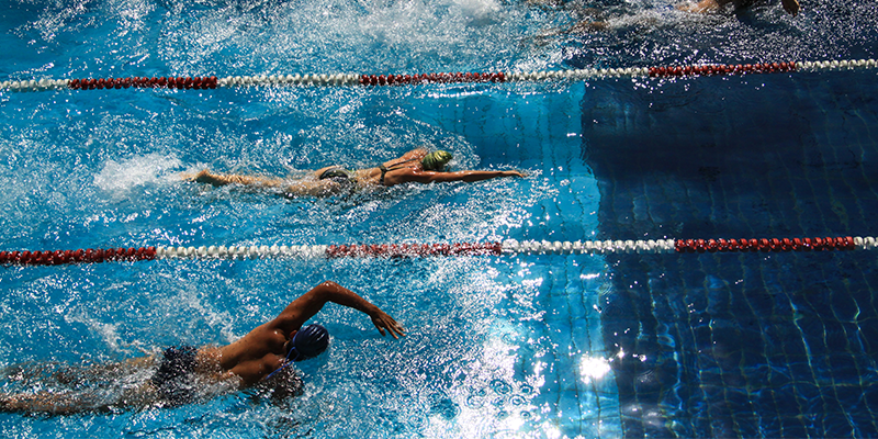 A natação de revezamento é uma modalidade que combina velocidade, resistência e trabalho em equipe. Nessa atividade, realizada pelo Sesc 24 de Maio, os participantes desfrutarão de uma experiência única na piscina, situada no terraço do prédio com uma vista panorâmica do centro da cidade.