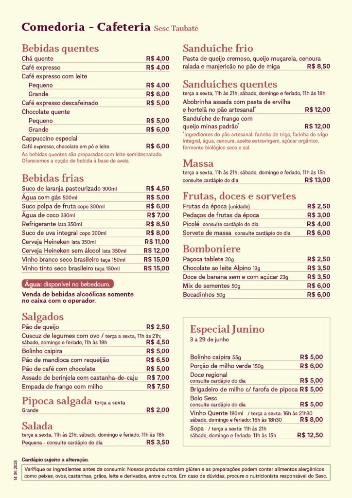 Atendimento para emissão de cartão da Credencial do Sesc, inscrições em cursos, venda de ingressos da programação pela rede IngressoSesc e informações sobre as atividades disponíveis.