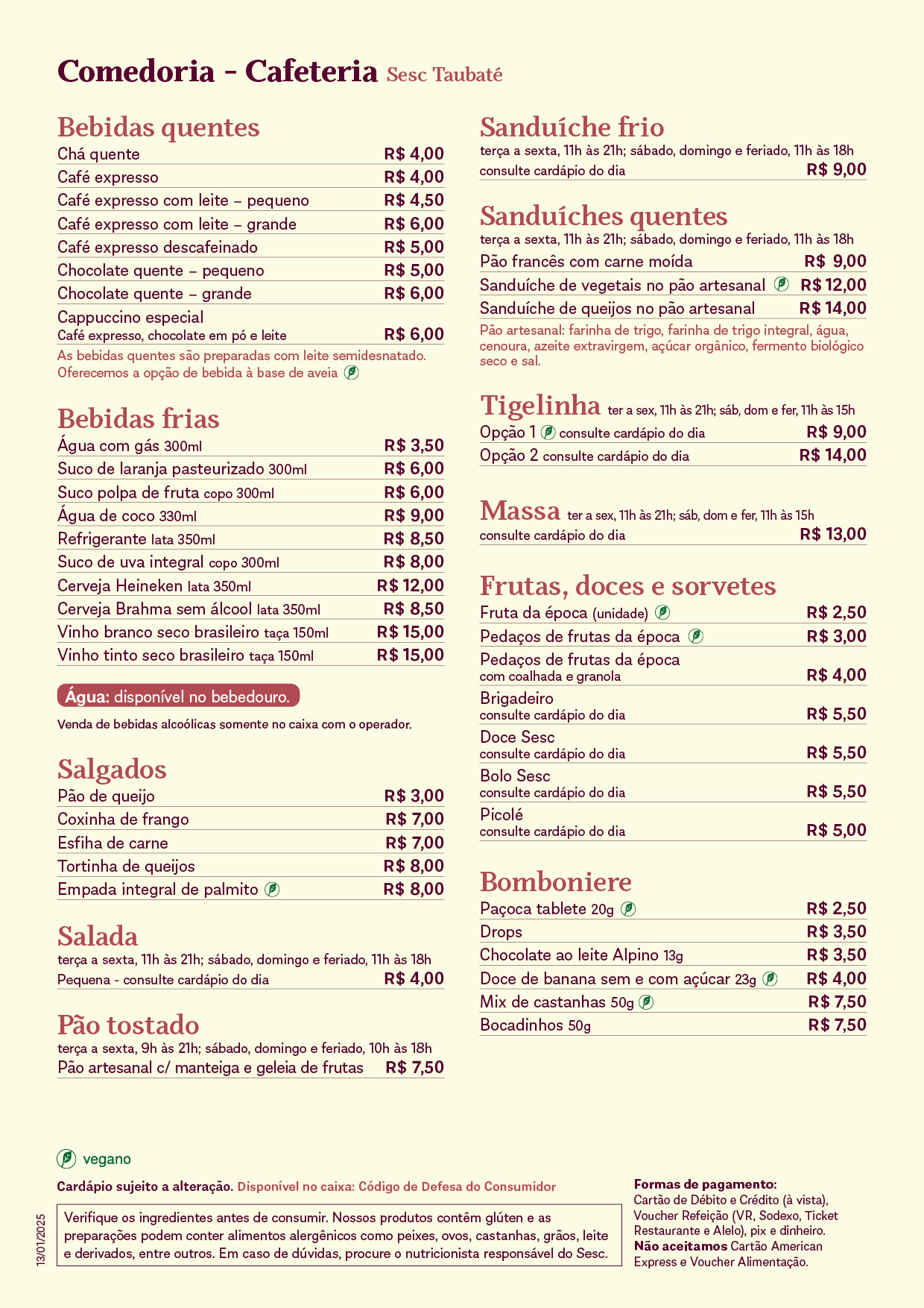 Cartão de Débito e Crédito (à vista), Voucher Refeição (VR, Sodexo, Ticket Restaurante e Alelo) e dinheiro. Não aceitamos o Voucher Alimentação e o PIX.