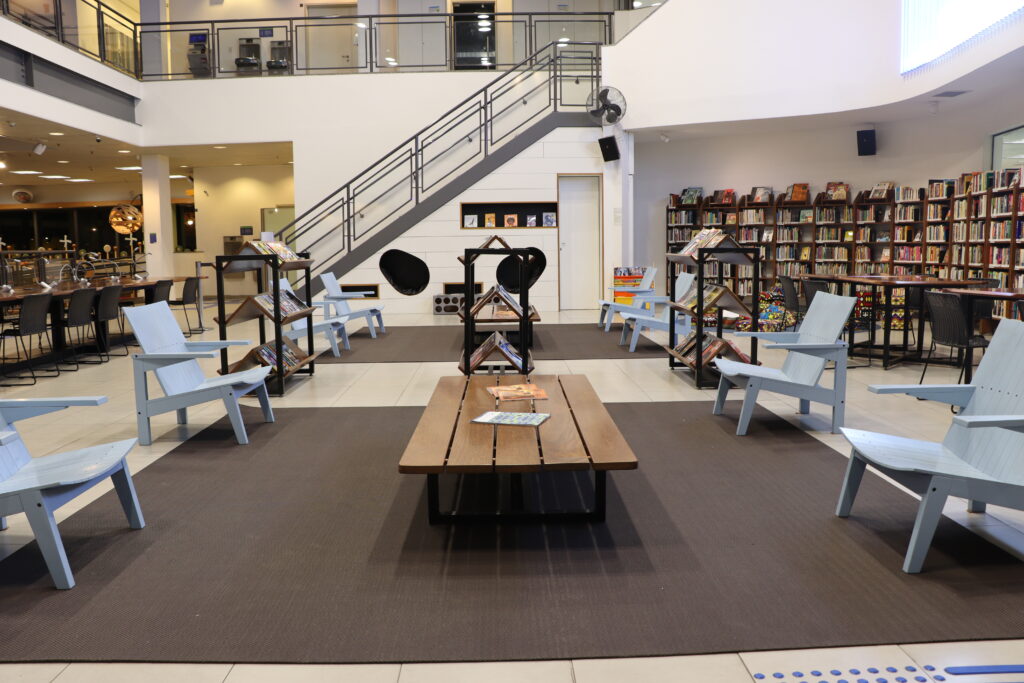 O acervo da nossa biblioteca é composto por literatura infantil e juvenil, literatura estrangeira, literatura brasileira, quadrinhos, ciências sociais, biografias, culinária, música e história. Este serviço está disponível para todos os públicos.