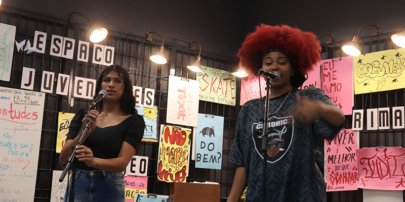 Destinado a adolescentes e jovens com idades entre 13 e 29 anos, o Juventudes é um programa de educação não formal que pauta suas ações na diversidade das juventudes e na participação efetiva do jovem. Por meio de variados formatos e linguagens artísticas, pretende-se contribuir com a ampliação do repertório cultural, estimular a convivência, autonomia e o respeito às diferenças. Além das oficinas, vivências e apresentações pensadas especialmente para os jovens, o programa também realiza suas ações a partir da construção conjunta com seus participantes.